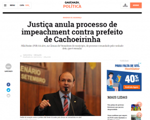 Processo de impeachment contra prefeito de Cachoeirinha é anulado pela Justiça